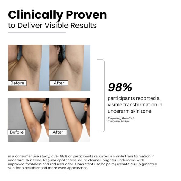 - ENHANCES SMOOTHER & BRIGHTER UNDERARMS: Formulated with 5% AHABHA , 3% Kojic Acid 2% Lactic Acid and 1% Salicylic Acid, this product gently exfoliates dead skin cells, promoting faster cell turnover and renewal for fresher, smoother skin. Additionally, 1% Mandelic Acid boosts collagen production, leading to radiant underarms. Meanwhile, Alpha Arbutin works to decrease melanin production, diminish dark spots, and even out underarm discoloration.