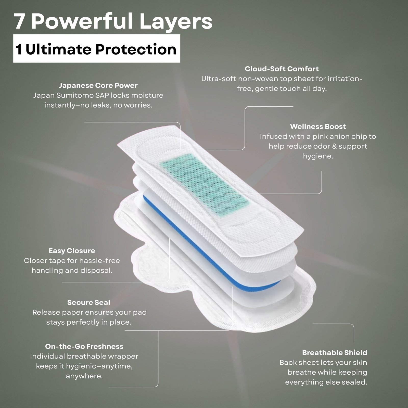High-Absorbency Design: Engineered for maximum liquid retention, these pads keep you dry and prevent leaks—key features of quality sanitary pads.